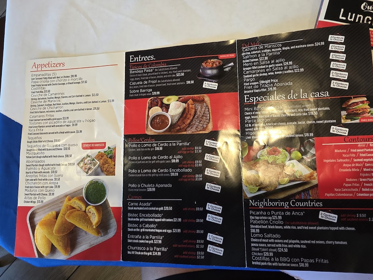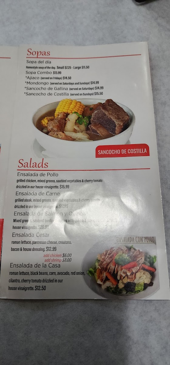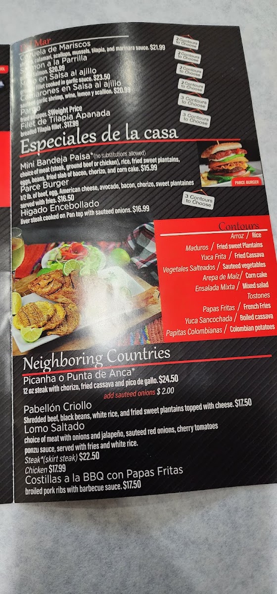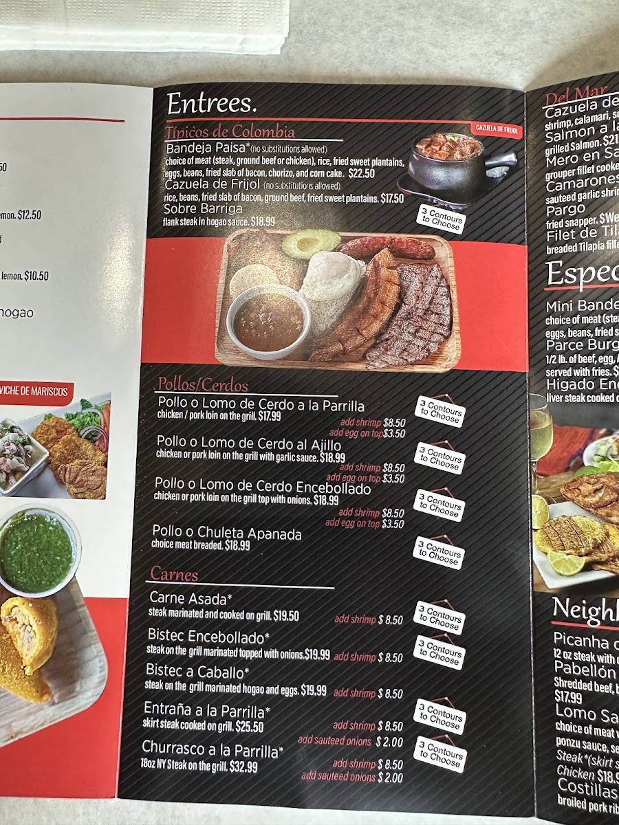 Calentado, Carne Asada, Arepa con Queso, Maduros, Huevos al Gusto.